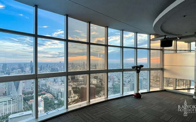 Disfrute de las brillantes vistas de la ciudad de Bangkok y más allá desde este edificio de 88 pisos sobre el bullicioso mercado Pratunam de Bangkok. El Bangkok Sky Hotel es uno de los edificios más altos de la ciudad y ofrece deliciosas cocinas en sus restaurantes para todos los gustos. Disfrute de una cita romántica con su ser querido o pase el rato con amigos y familiares: el Baiyoke Sky seguramente le brindará una experiencia memorable.