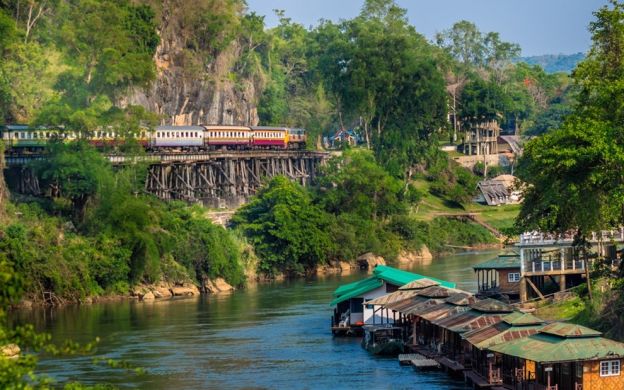 Nuestro último refugio para el día es el notorio Ferrocarril Tailandés-Birmania o, como se le conoce comúnmente: el Ferrocarril de la Muerte. Embárcate en un tren para viajar a través de una zona particularmente peligrosa, cruzando bordes de acantilados escarpados y áreas boscosas profundas, mientras contamos las historias de todo el trabajo forzado al que fueron sometidos los prisioneros aliados, construyendo y manteniendo la línea de ferrocarril. Después de esta electrizante actividad, daremos un paseo panorámico por la selva para llegar a nuestro restaurante, donde lo deleitaremos con una selección estelar de platos para un almuerzo buffet y finalmente lo llevaremos de regreso a su hotel.